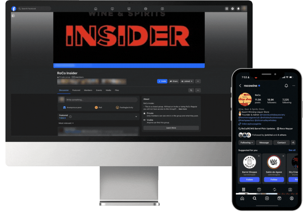Invite-Only Group via Facebook (Desktop) & Public Instagram Account (Mobile)